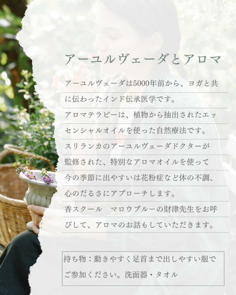 アーユルヴェーダ × アロマヨガ春をスッキリ迎えましょう〜アロマで花粉症ケア〜